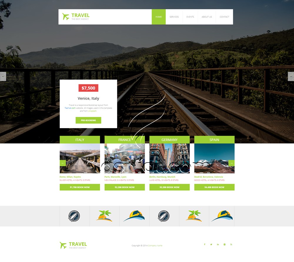 Travel is green color theme HTML5 template for tour websites. Total 5 pages are designed for different sections and columns. Homepage features image and content sliders.